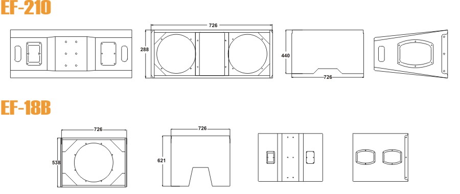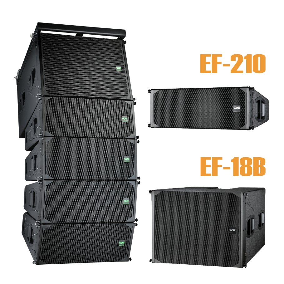 ● EF210是一款双10寸二分频的紧凑型线阵列扬声器,箱体采用新型同轴结构设计方式,由 两个44芯钕磁高音单元组成;搭配 平面波导号角,拥有水平90°和垂直10°的线性声学波阵面,对覆盖区域进行准确的投射;低频部分由2只10寸75芯钕磁单元组成,以高音单元为波阵面中轴核心,左右 水平对称结构设计,从而保证低频拥有紧实的音色和强劲冲击力。