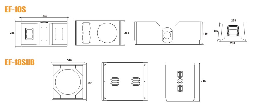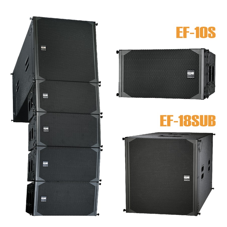●设计应用场景包括1个EF-18B有源超低频扬声器和2个EF-10S有源超薄全频线阵的支撑操作、2个EF-18B有源超低频扬声器和4个EF-10S有源超薄全频线阵的堆叠操作,以及最多12个EF-10S有源超薄全频线阵吊装使用和随意数量的EF-18B有源超低频扬声器搭配使用。