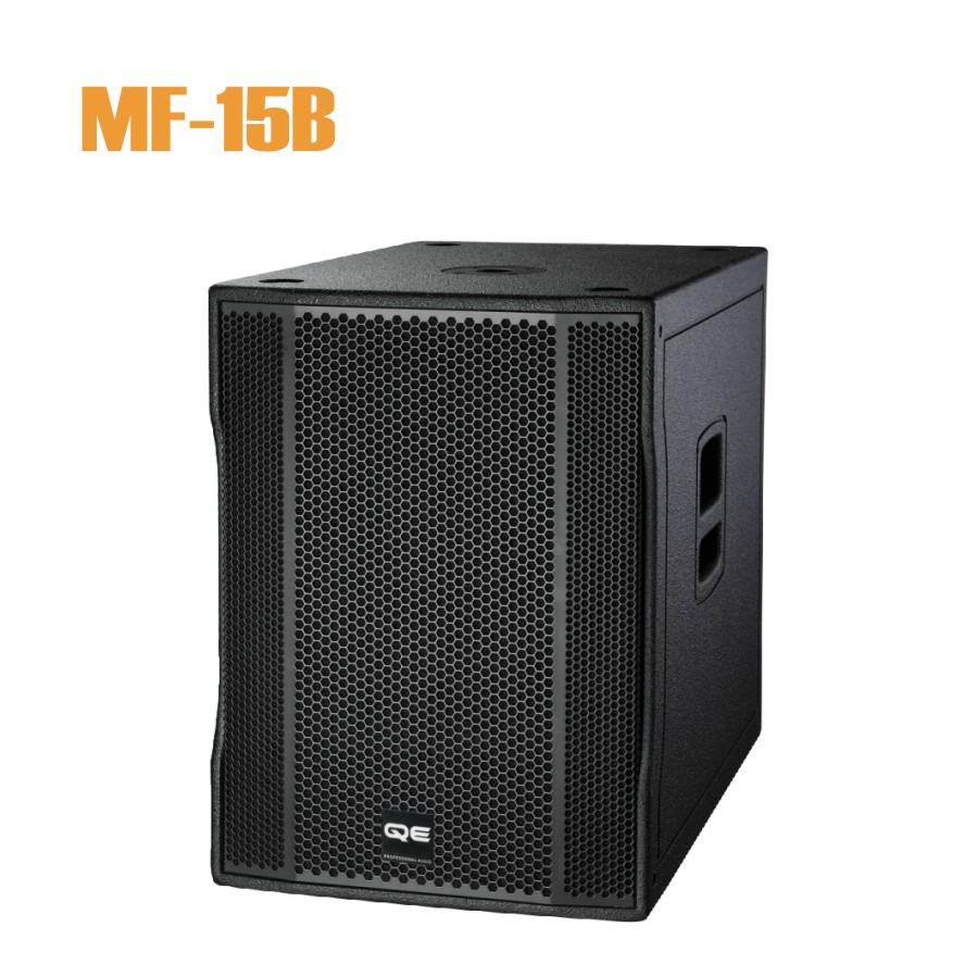 ● MF-15B采用矩形外观设计,箱体采用18厘夹板制作,外喷黑色水性环保漆;配两个内置提手,一个全铁托盘,配1个Speaker四芯插座,四个防震脚垫。