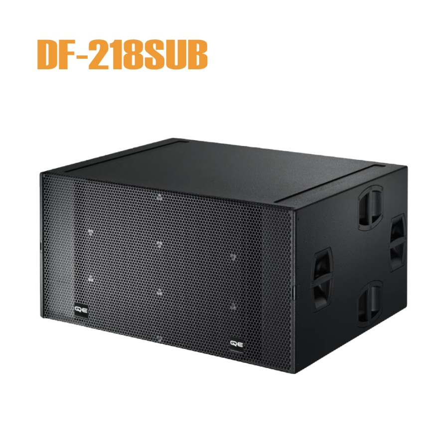 DF-218SUB 是一款专为地面堆叠应用而设计的高性能超低频音箱,采 用带通式箱体设计,内置两只 18“ 长冲程驱动单元。它具有高声压 级和频响宽等特点,非常适用于任何大型扩音场所。 当DF-218SUB 在INFRA模式运行时,通过拓宽系统的频率响应,可以作 为补偿其它QE超低频音箱。采用三只或以三只为倍数的DF-218SUB 超 低频音箱时,可以摆成心型低频阵列,用以实现良好的指向性控制, 而且能明显地减少音箱后方的声能量辐射。 箱体选用航海木质夹板制造,表面喷涂抗撞漆。箱体的正面装有刚硬 的金属保护网罩,网罩背面内衬透声泡沫塑料。DF-218SUB 的每一边 侧面板均附有4个把手, 箱体设有两根垫条,用来保护底板免遭刮擦。箱体地板设有两根垫 条,顶板上两个相应的凹槽用来容纳这些垫条,以便堆叠使用时避免 箱体移动。