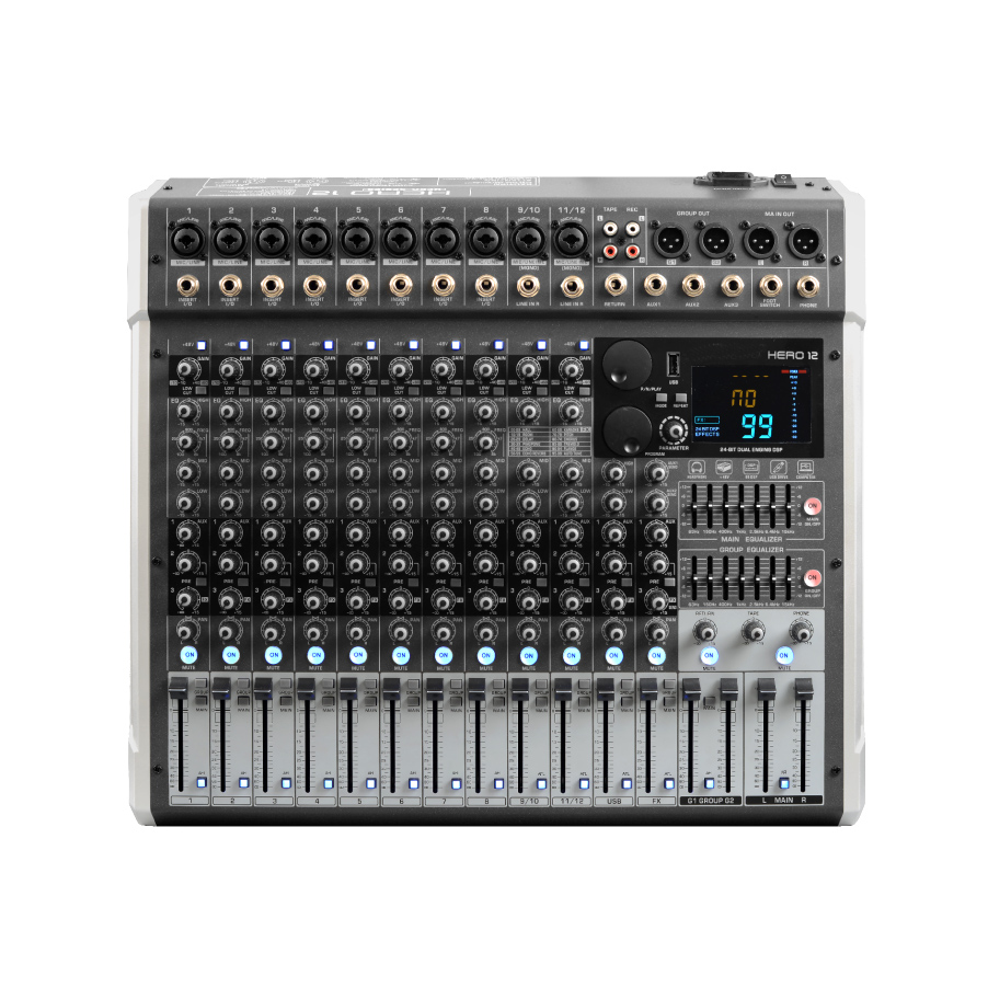 1、专业型紧凑式调音台,超低噪声离散式麦克风前置放大器和+48V幻象电源,功能强大齐全,音质动听。