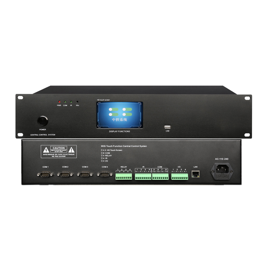 7.主机自带4.3英寸LCD触摸彩屏,可查看IP地址、修改IP地址。面板具有指示灯,可直观反馈串口、红外、设备的工作状态。支持全制式环保电源(110V-240V),适合任何地区。